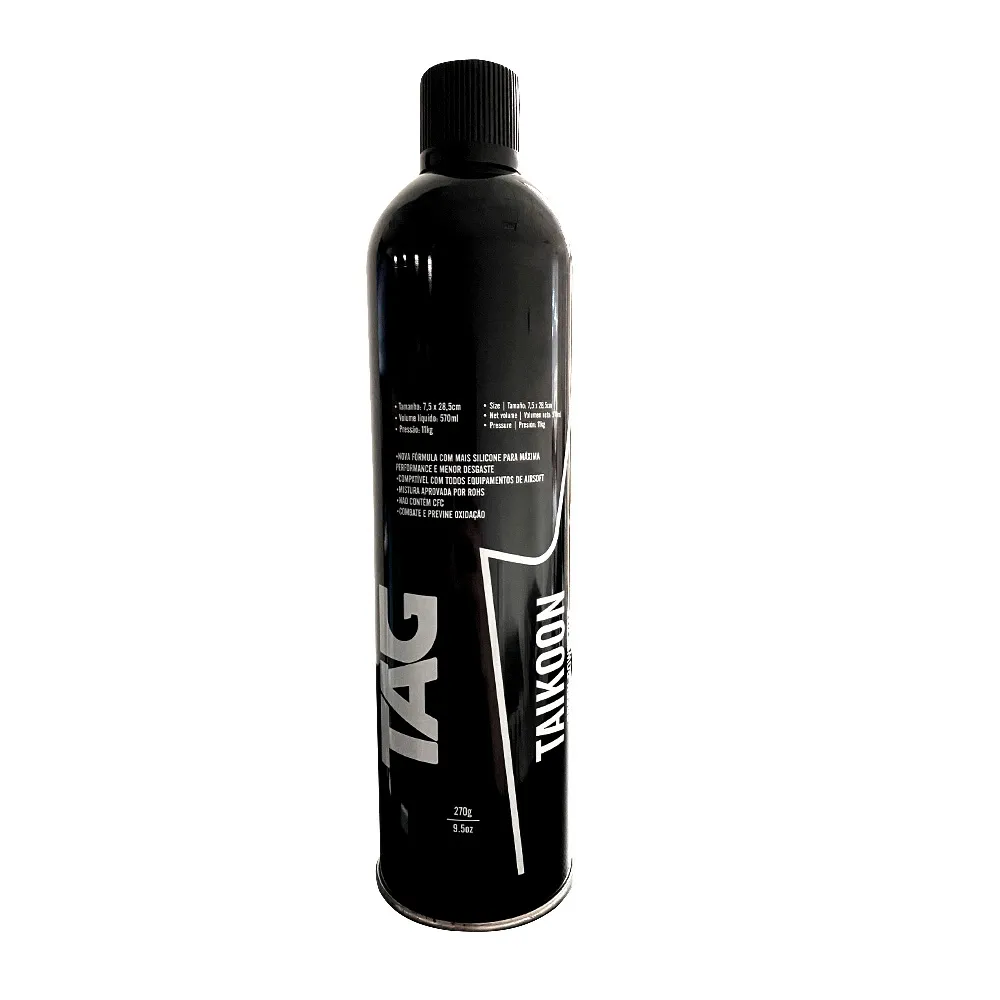 O Green Gás Taikoon da TAG foi projetado para ser compatível com todas as Airsoft GBB, que possuem propulsão a gás, já que sua mistura foi aprovada por ROHS (diretriz européia que assegura a restrição de determinadas substâncias perigosas) e não contém CFC.