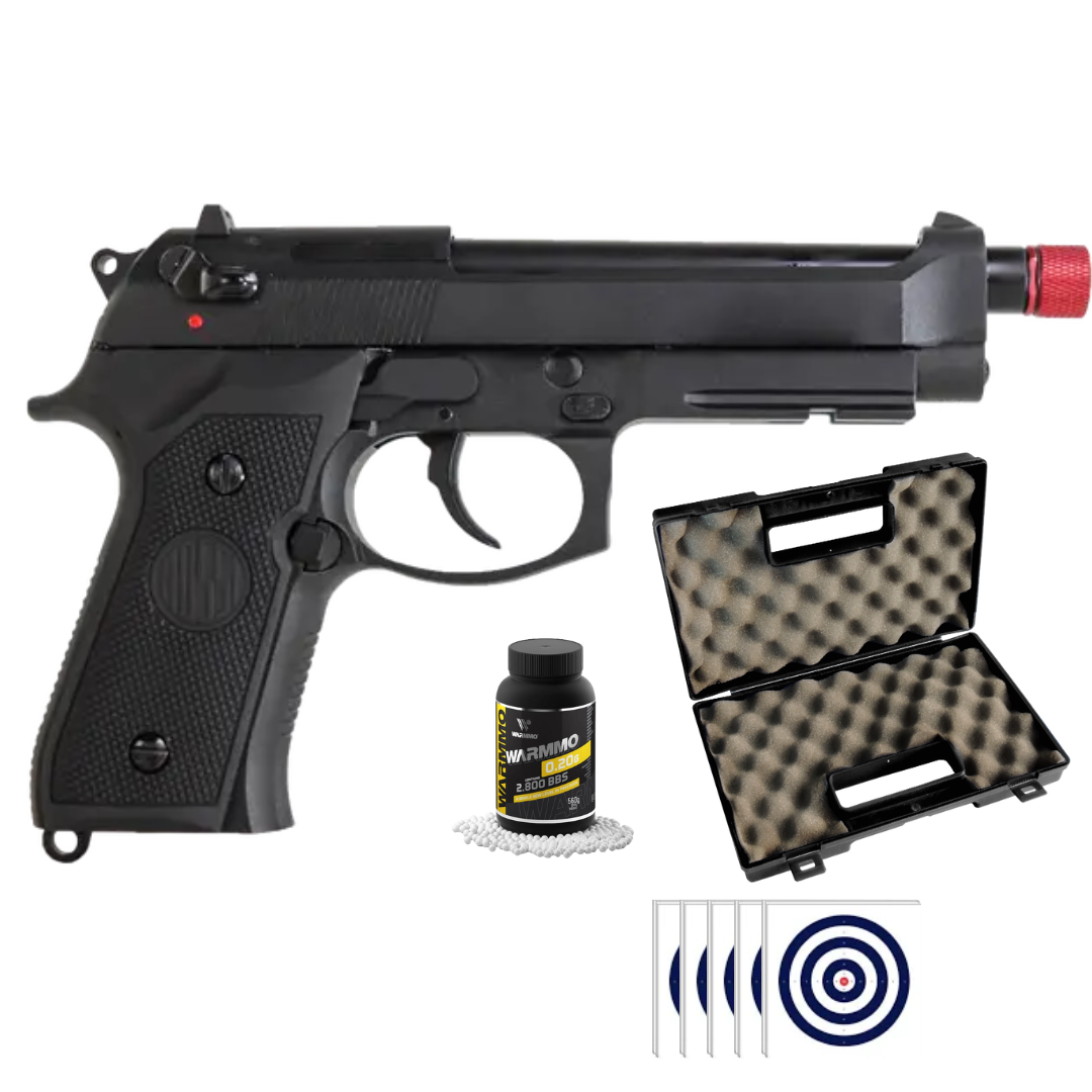 Kit Pistola Airsoft M92 GBB Rossi + Munição + Case – Completo para Treino e Lazer